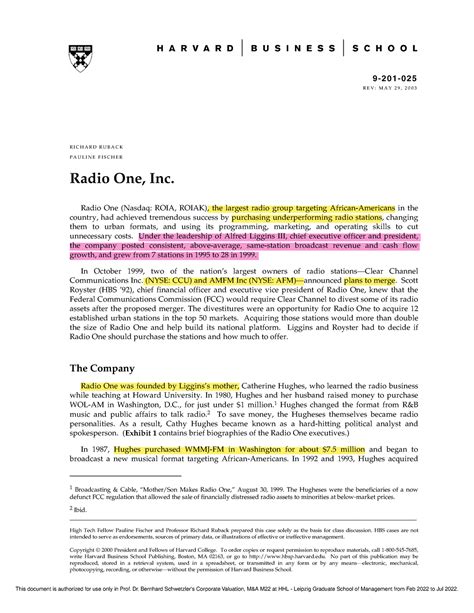 Pdf Download RADIO ONE INC CASE ANALYSIS Kobo PDF
